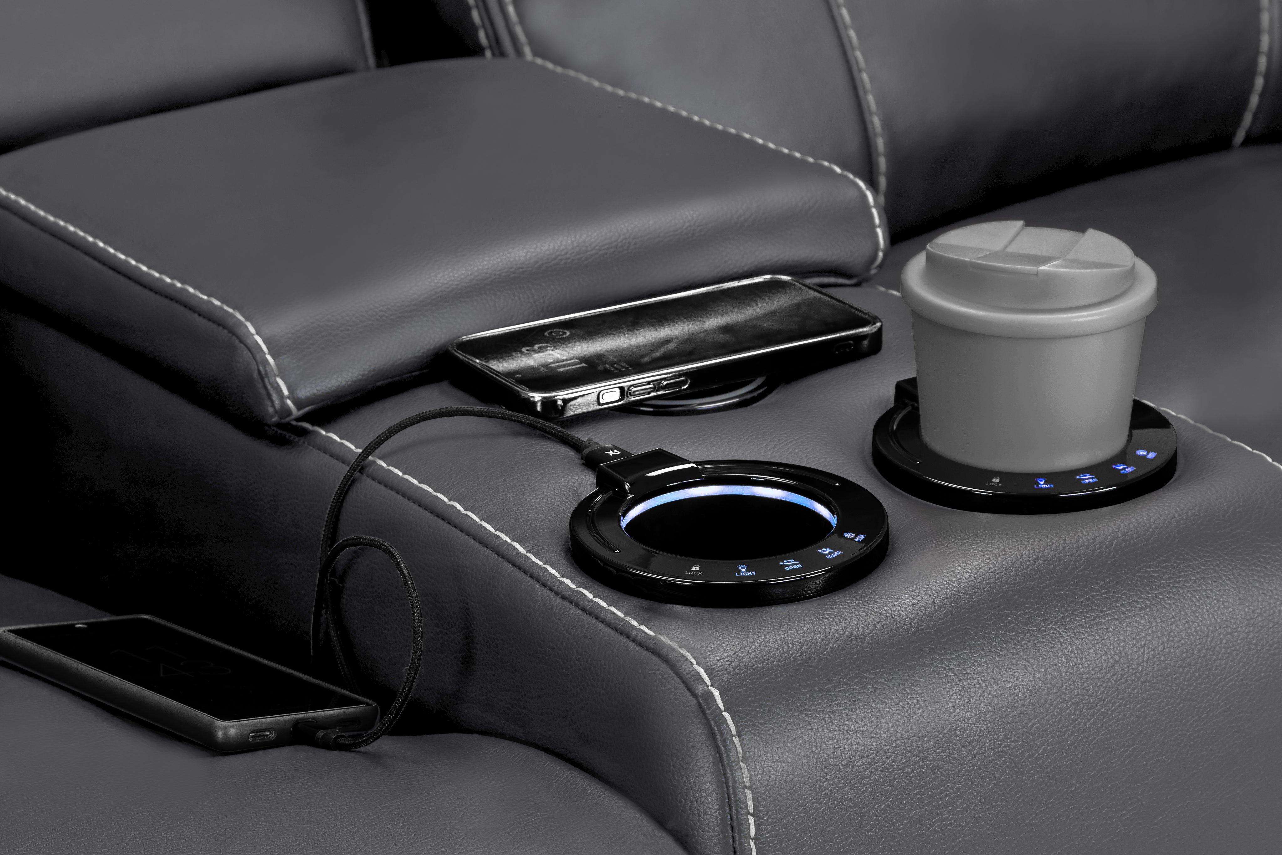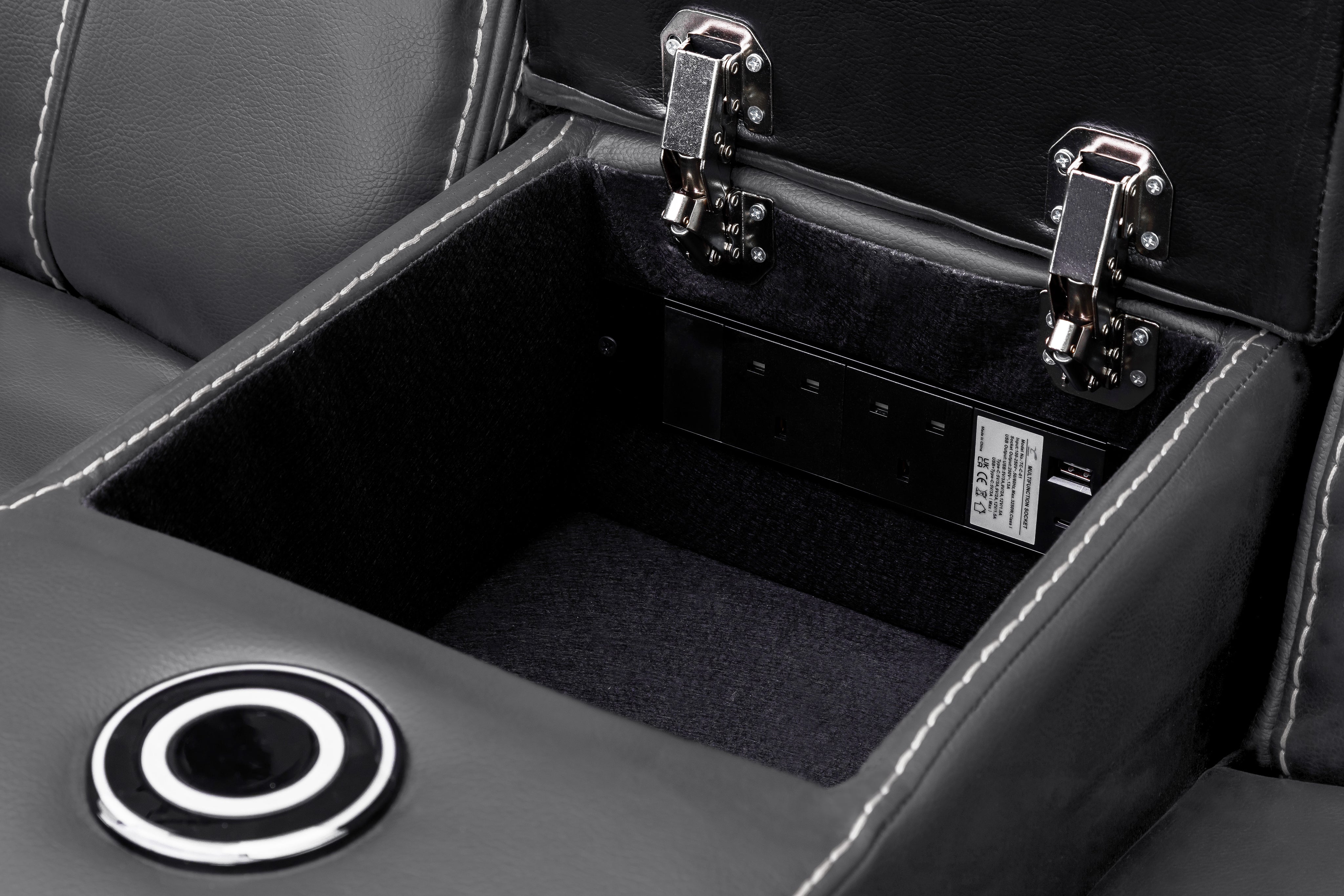 Designed for convenience, the sofa features attached armrests with built-in storage compartments, cup holders, and USB charging ports, combining modern functionality with comfort. Foam-padded seats and supportive backrests provide excellent ergonomics, ensuring long-lasting comfort for all users.