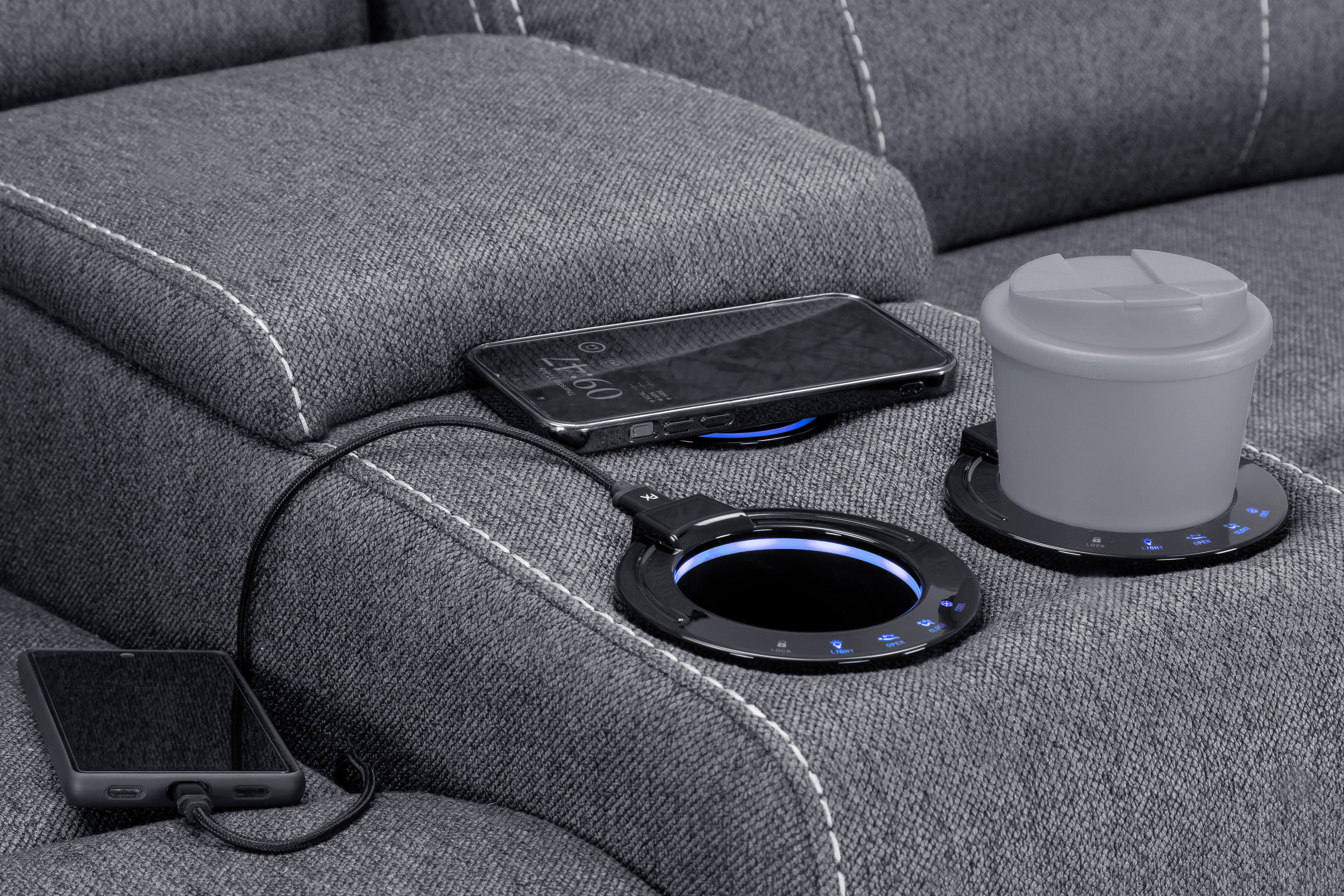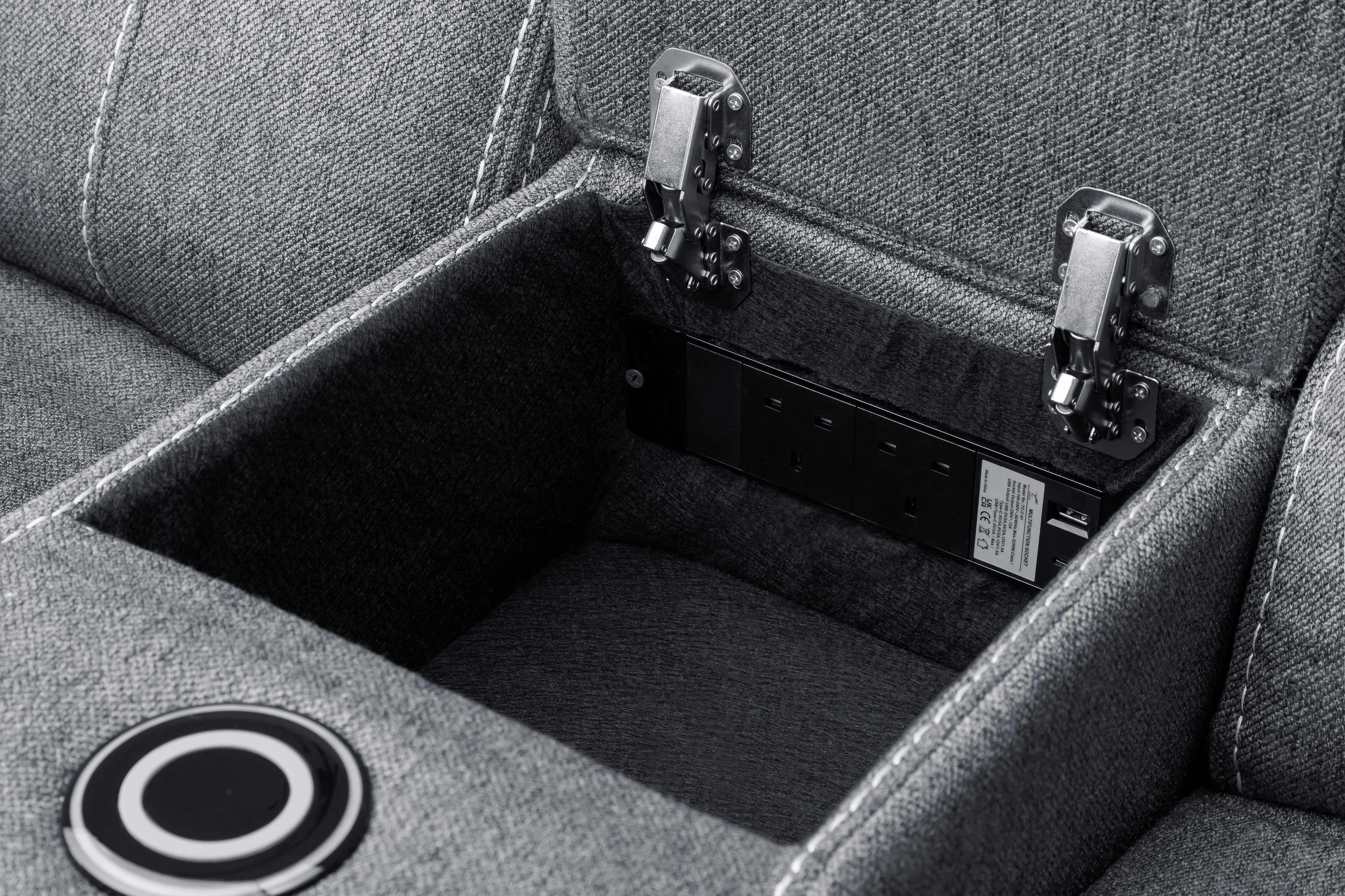 Equipped with a smooth electric reclining function, this fabric recliner allows effortless adjustment for personalised comfort. The sofa also features attached armrests with built-in storage compartments, cup holders, and USB charging ports, combining convenience with ergonomic design. Foam-padded seats and supportive backrests ensure excellent comfort for long sitting sessions.
