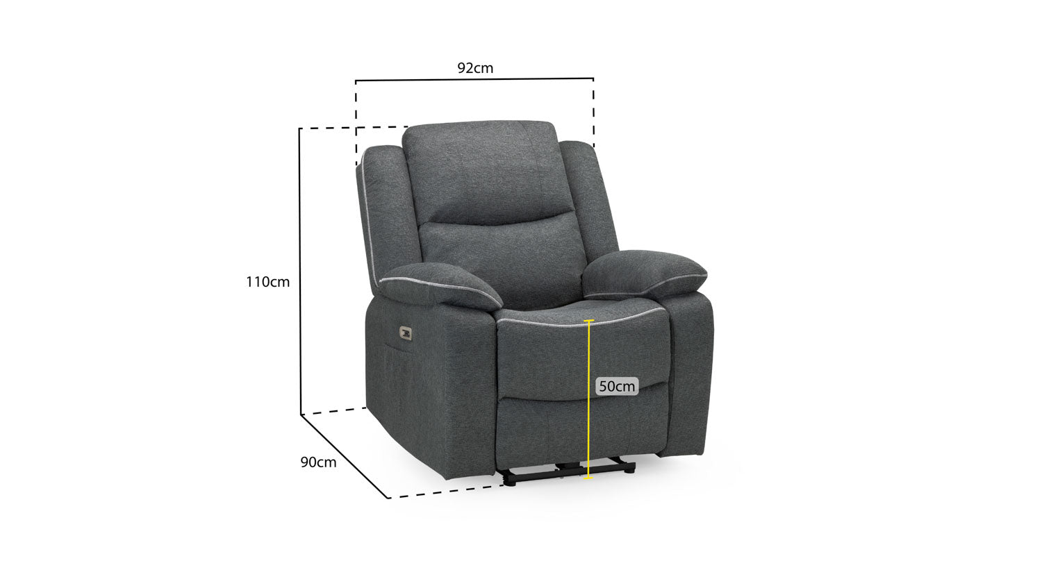Obrienn Electric Recliner Sofa Grey Fabric Armchair