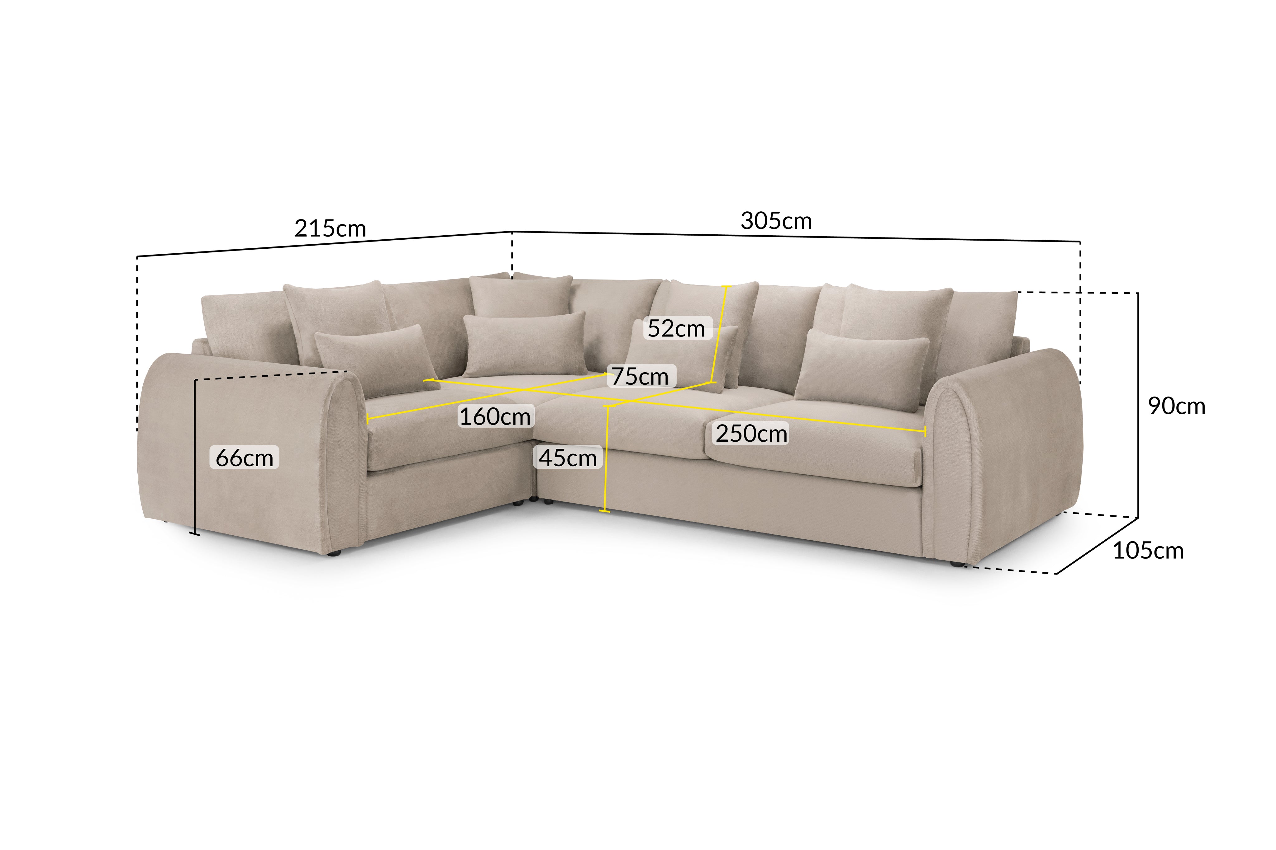 Upgrade your living space with the Celesyn Sofa Mocha Left Hand Facing Corner, a luxurious corner sofa designed for comfort and style. Upholstered in soft chenille fabric, this mocha-coloured sofa provides a velvety, cosy feel that invites you to relax and unwind. Its large, spacious seating and extra comfort cushions make it perfect for family gatherings, movie nights, or quiet reading sessions.