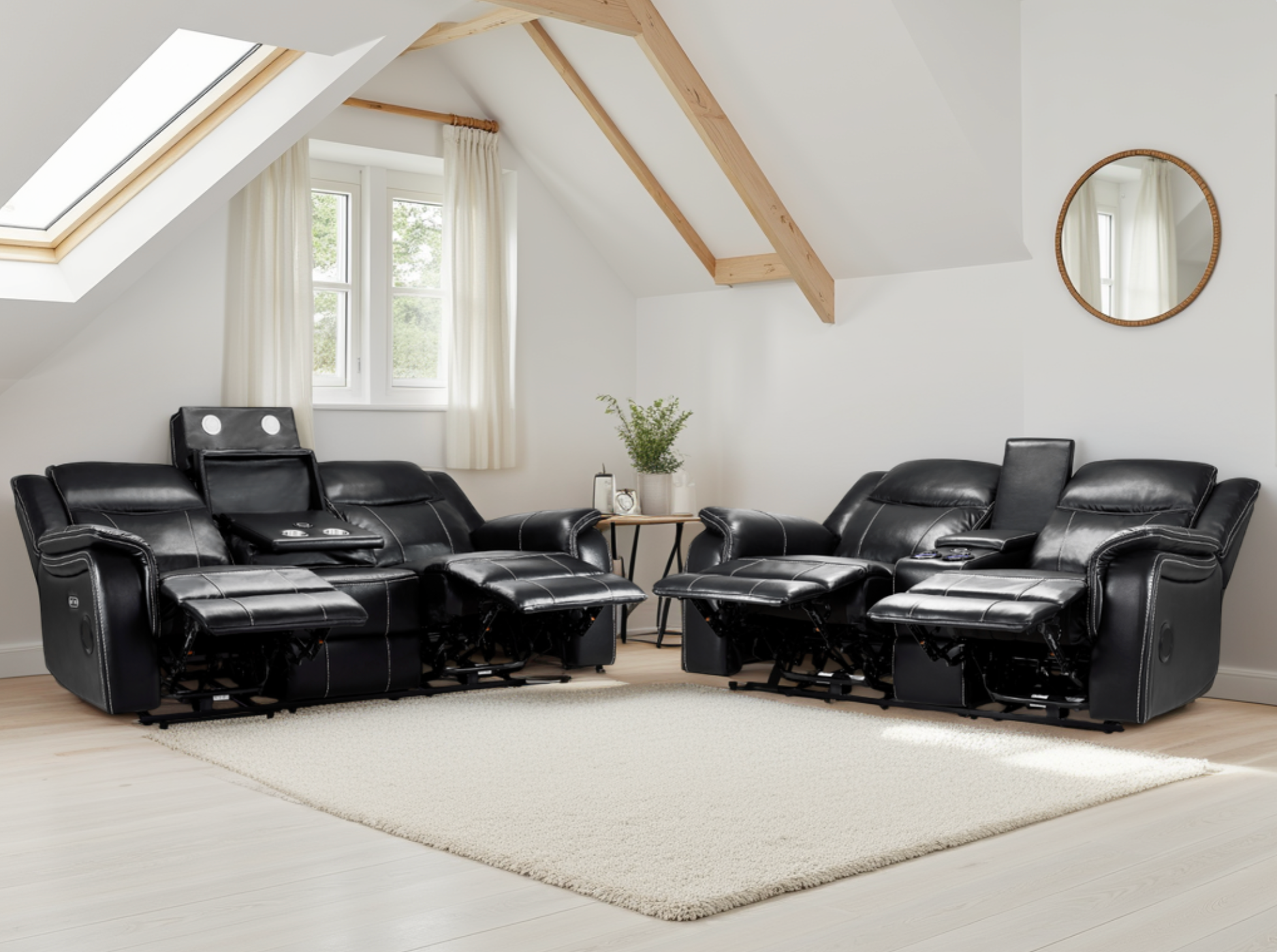 Each seat in this recliner sofa set comes with a smooth electric reclining function, allowing effortless adjustment for personalised comfort. The set also includes attached armrests with built-in storage compartments, cup holders, and USB charging ports, combining modern convenience with elegant design. Foam-padded cushions and ergonomic backrests deliver superior comfort for long lounging sessions.