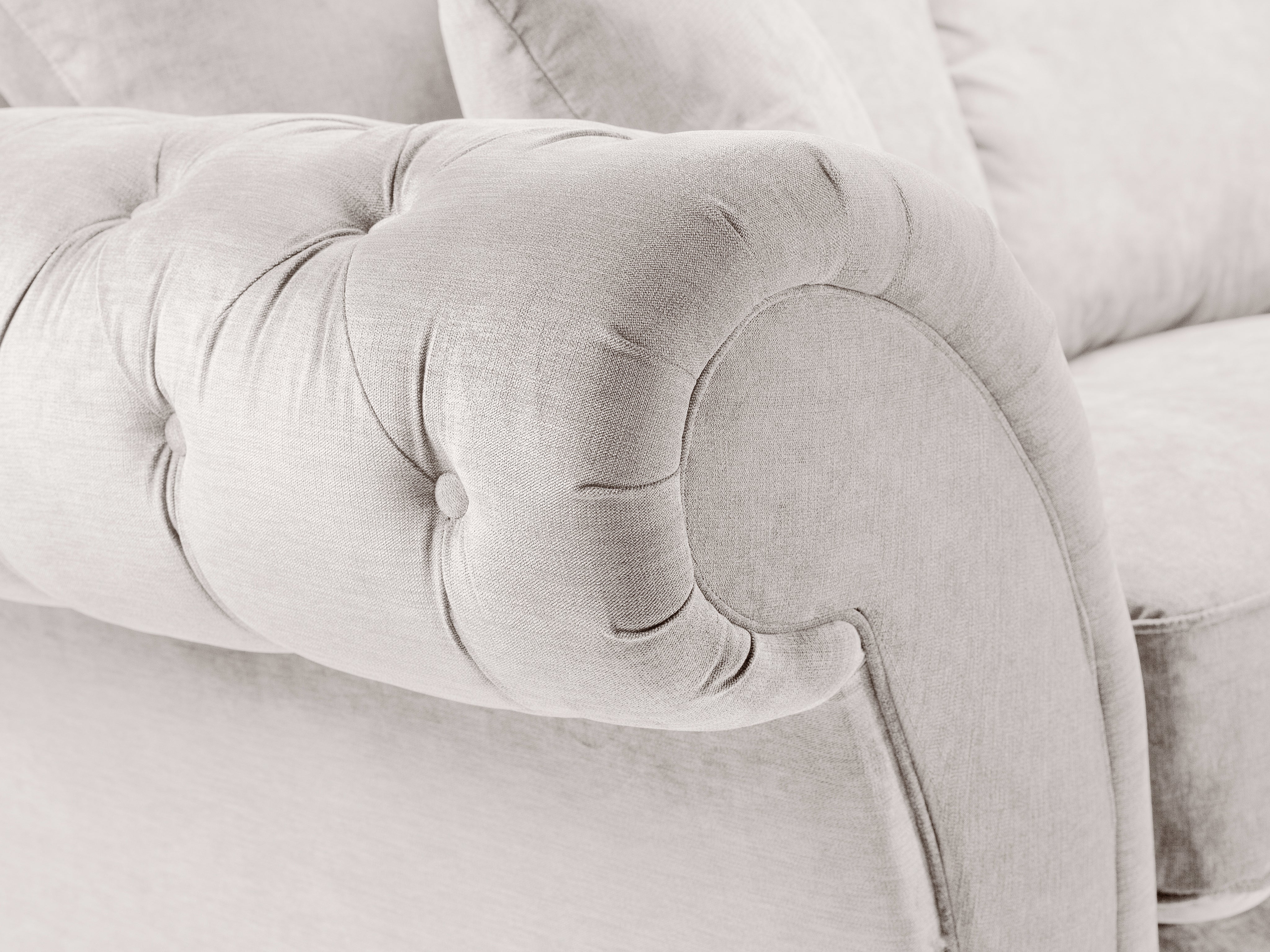Upgrade your living room with the Velcrest Fullback Stone 4 Seater Sofa, a spacious and stylish centrepiece designed for modern UK homes. With its elegant button-tufted scroll arms, supportive full backrest, and plush foam-filled removable cushions, this sofa delivers premium comfort for families and everyday relaxation.